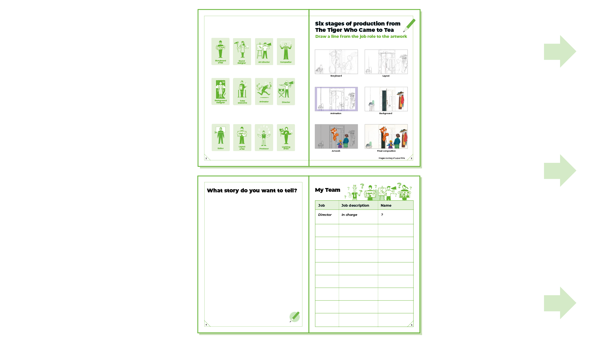 You might want to use our animation career map when explaining different roles to the children. You can download the PDF of this map and print it on A3 paper. Alternatively, you can scroll through the different roles on our website: animation job profiles.